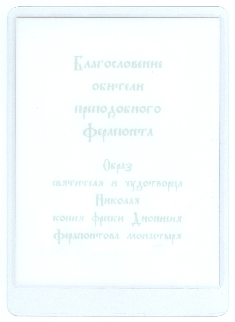Святитель и чудотворец Николай Мирликийский - особо почитаемый святой в Ферапонтовом монастыре. В главном соборном храме Рождества Богородицы находится придел, посвященный святителю Николаю. Все росписи собора выполнены иконописцем Дионисием.