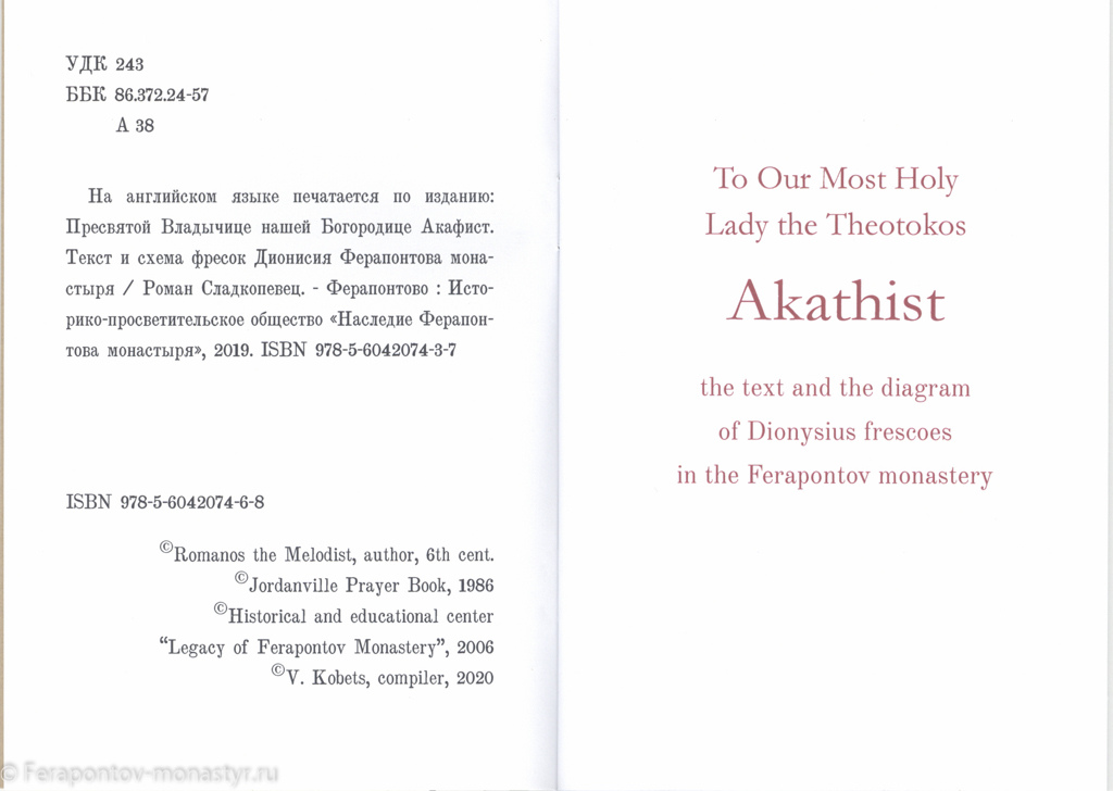 Книга: «Акафист Пресвятой Владычице нашей Богородице. Текст и схема фресок Дионисия Ферапонтова монастыря».