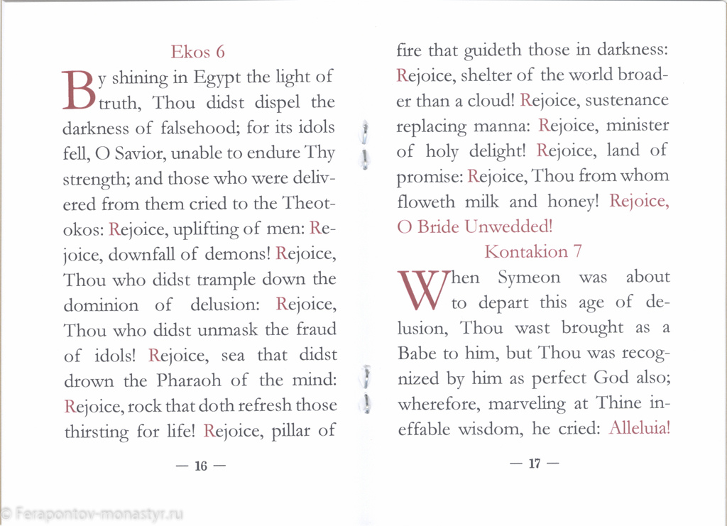 Издание адресовано всем посетителям монастыря преподобного Ферапонта в Белозерье. Стенопись собора Рождества Богородицы сделала Ферапонтов монастырь всемирно известным. Особое место среди росписей занимает «Акафист Богородице» — живописная интерпретация хвалебного песнопения, состоящего из 25 песен. У Дионисия-иконописца нашли своё отражение все песнопения Акафиста. Мастер расположил сцены третьим ярусом росписей по всему периметру собора, и создал одно из самых