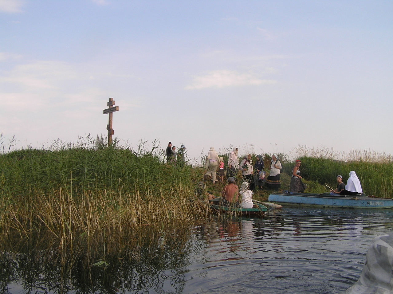 Игумения Таисия (Солопова), 1909 г.: "Невдалеке от монастыря на Бородавском озере виден так называемый "каменный островок", сооружённый собственноручно патриархом Никоном, который своими руками собирал на берегах камни и подвозил к намеченному месту. На этом островке патриарх, всегда заявлявший открыто о неправильности и незаконности своего низложения, водрузил крест со следующей надписью: "Сей Животворящий Крест Христов поставил смиренный Никон, Божиею милостию патриарх, будучи в заточении за Слово Божие и за святую Церковь на Белоозере в Ферапонтове монастыре в тюрьме".
